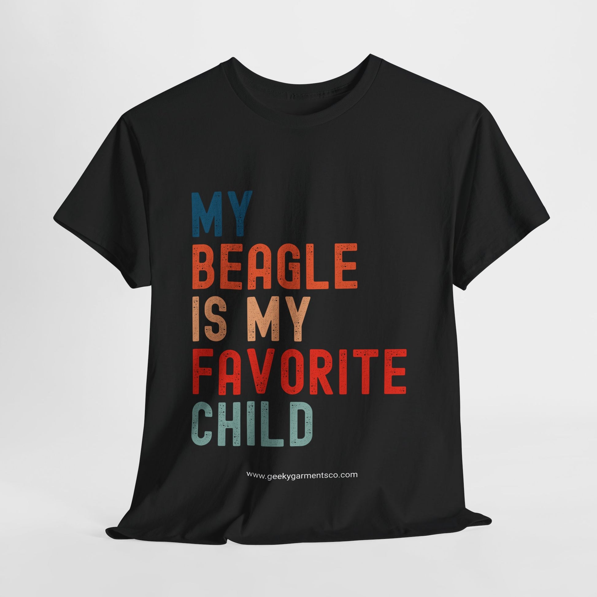 The 'My Beagle is my favorite child' t-shirt is perfect for dog lovers who consider their furry friend as a part of the family. It gives off a fun and playful vibe and is great for casual wear. Ideal for adults, this t-shirt is made from high-quality fabric that is strong and smooth, perfect for printing. Whether it's a casual day out or a cozy night in, this t-shirt fits seamlessly into the wardrobe of dog lovers. Product features - 100% cotton fabric for comfort and durability - Dual printing techniques for crisp designs - Tear-away label for scratch-free wear - Ethically grown and harvested US cotton - Classic fit and crew neckline for timeless look Care instructions - Do not iron - Do not dryclean - Machine wash: cold (max 30C or 90F) - Tumble dry: low heat