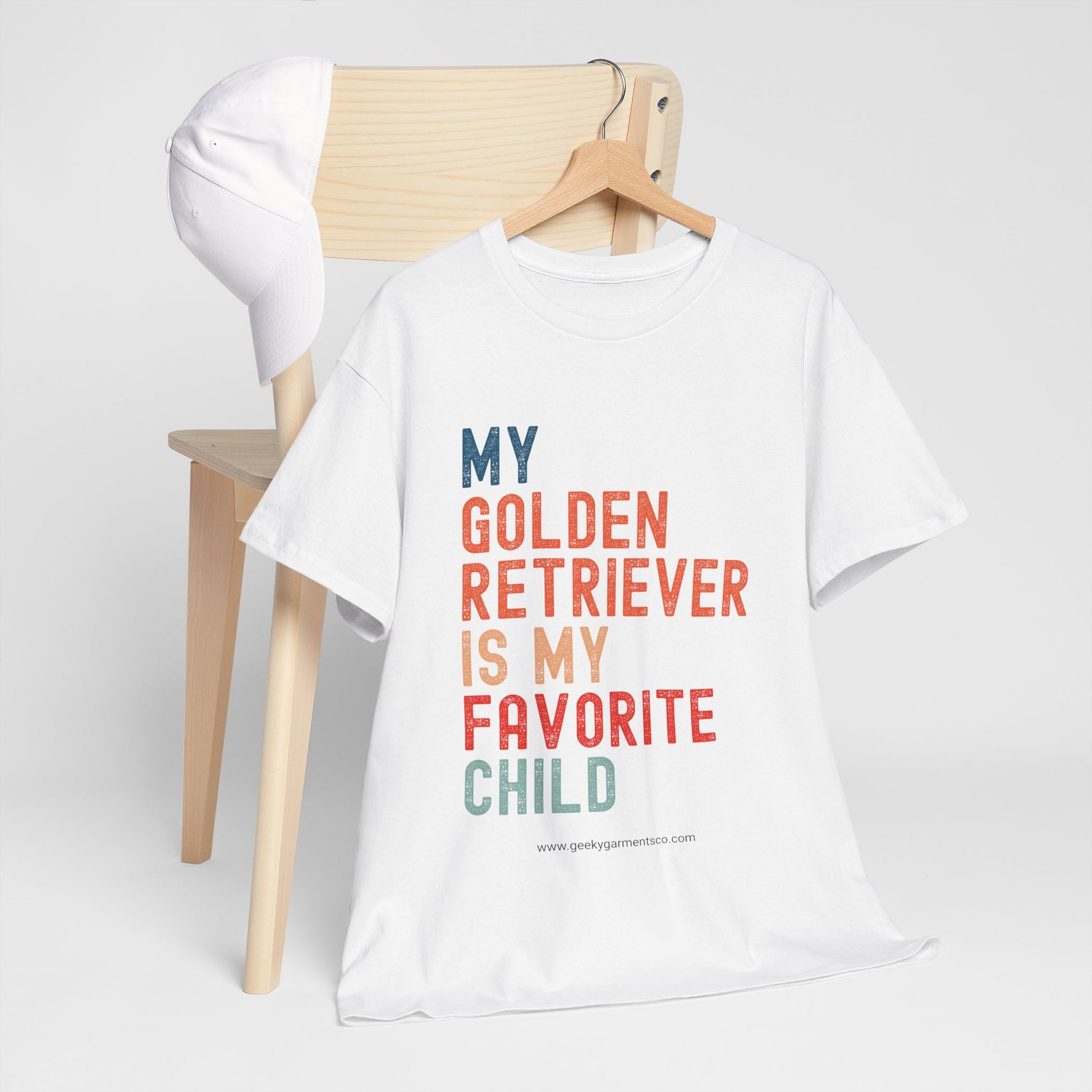 The 'My Golden Retriever is my favorite child' t-shirt is perfect for dog lovers who consider their furry friend as a part of the family. It gives off a fun and playful vibe and is great for casual wear. Ideal for adults, this t-shirt is made from high-quality fabric that is strong and smooth, perfect for printing. Whether it's a casual day out or a cozy night in, this t-shirt fits seamlessly into the wardrobe of dog lovers. Product features - 100% cotton fabric for comfort and durability - Dual printing techniques for crisp designs - Tear-away label for scratch-free wear - Ethically grown and harvested US cotton - Classic fit and crew neckline for timeless look Care instructions - Do not iron - Do not dryclean - Machine wash: cold (max 30C or 90F) - Tumble dry: low heat