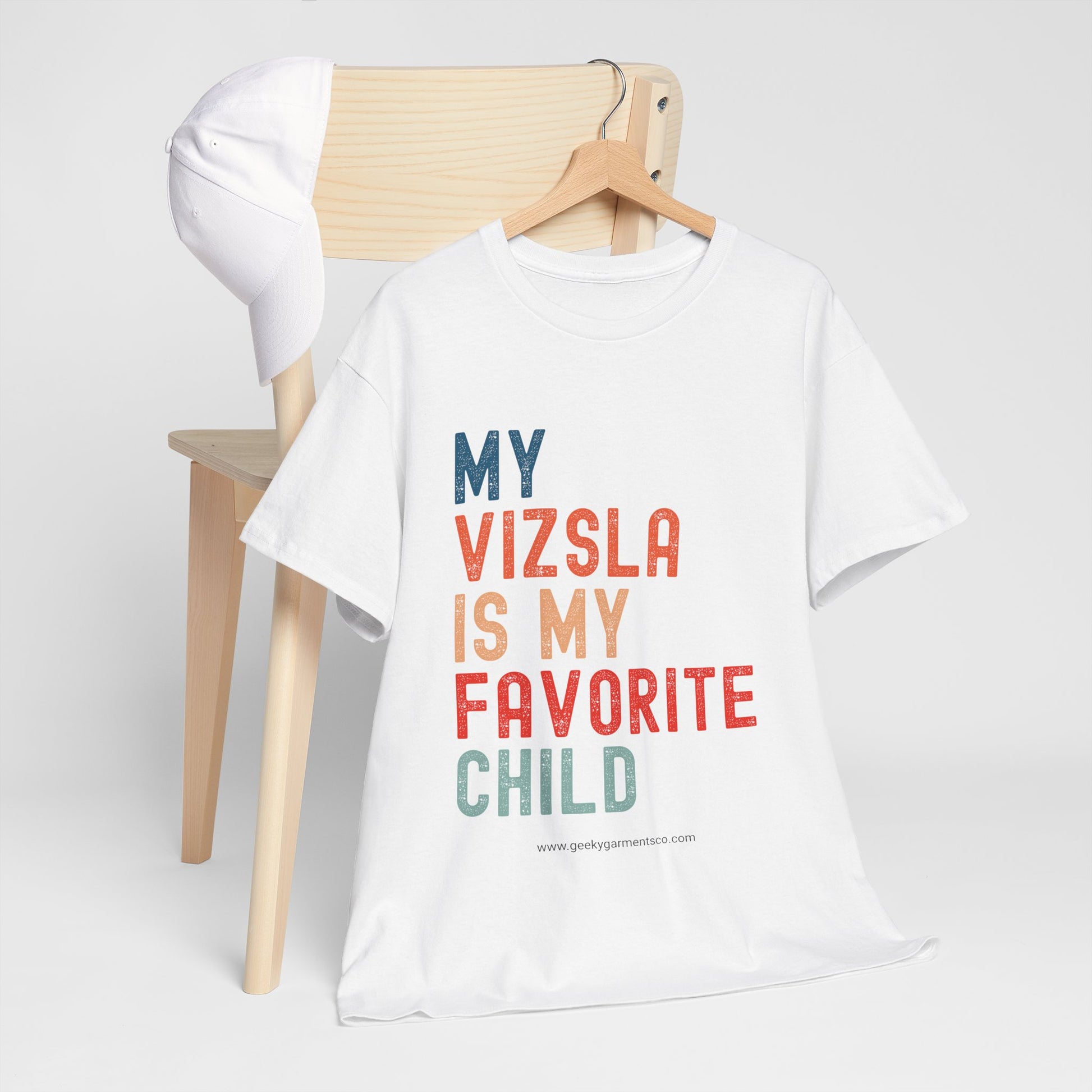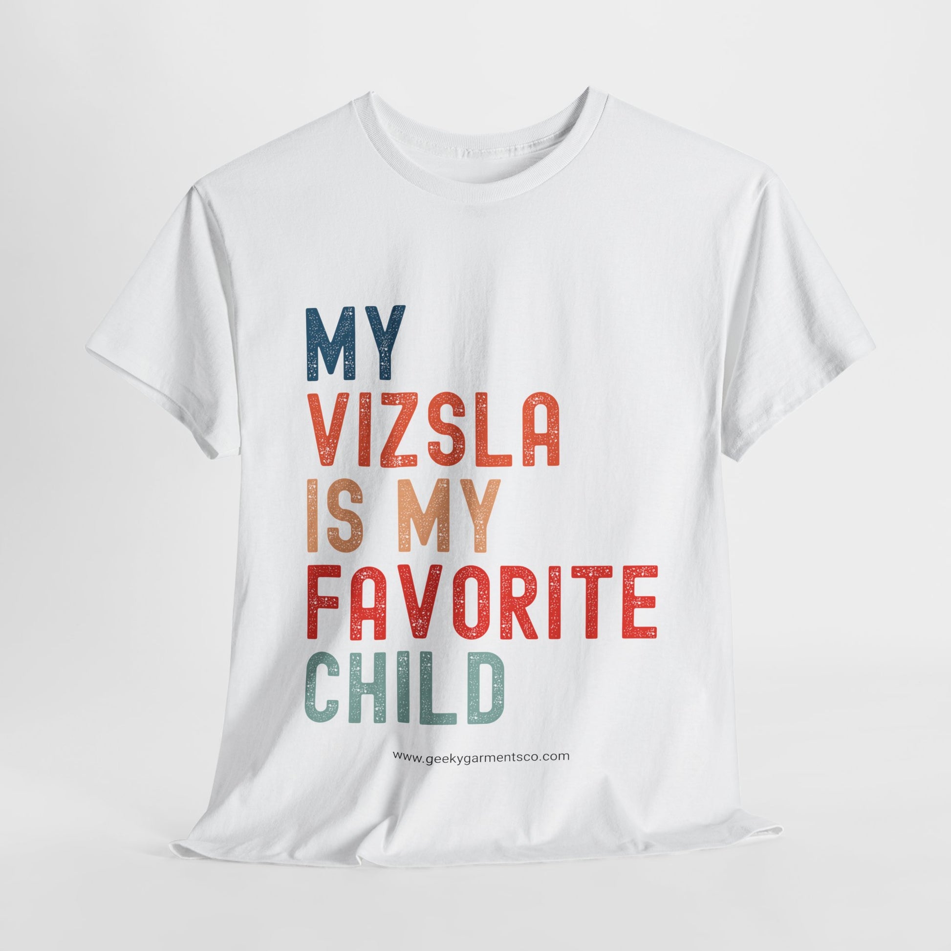 The 'My Vizsla is my favorite child' t-shirt is perfect for dog lovers who consider their furry friend as a part of the family. It gives off a fun and playful vibe and is great for casual wear. Ideal for adults, this t-shirt is made from high-quality fabric that is strong and smooth, perfect for printing. Whether it's a casual day out or a cozy night in, this t-shirt fits seamlessly into the wardrobe of dog lovers.